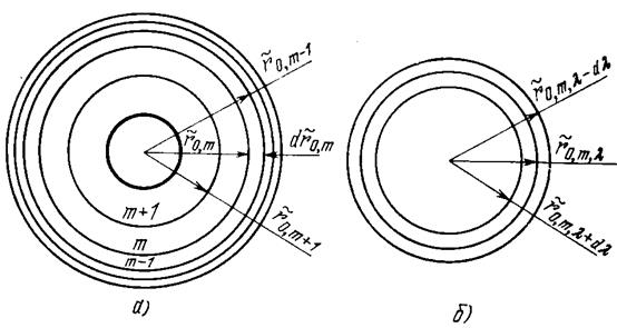 сек). Использование для записи голограмм импульсных лазеров позволяет осуществлять запись подвижных объектов или быстропротекающих процессов, характерные времена которых меньше длительности лазерного импульса. Кроме этого, при записи импульсных голограмм нет необходимости обеспечивать высокую степень виброустойчивости оптической схемы записи и отдельных её элементов, что характерно в случае использования лазеров непрерывного действия. Во время записи голограммы происходит «запоминание» регистрирующей средой взаимного расположения «стоячих» волн, образованных при интерференции так называемой опорной волны с объектной, т.е. рассеянной объектом волной. Пример такой картины интерференции плоской опорной и сферической объектной волны приведен на рис.1, где указаны также характерные положения регистрирующей среды при записи голограмм различного типа. Период интерференционной картины (d) зависит от угла между опорным и объектным пучками (2Q), а также длины волны (l) излучения при записи и определяется по формуле Брэгга (1912): 2 d sinQ = l