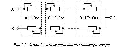 Упрощенная схема потенциометра, показанная на рис. 1.3, отличается от схемы, приведенной на рис. 1.2, дополнительным сопротивлением R