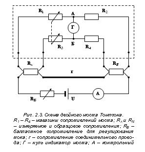 подключаются к клеммам двойного моста, течет ток и, следовательно, сопротивления этих проводников необходимо было бы учитывать. Однако в схеме двойного моста подводящие провода включаются не последовательно с R