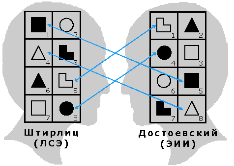 Внушаемая функция Штирлица – этика отношений , и поэтому ему очень необходимы чуткость и душевное участие партнера, а у Есенина этика отношений проявляется неосознанно (8-я функция), в результате Штирлиц чувствует себя непонятым и неудовлетворенным.