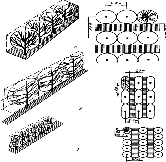 Округлые кроны приближаются к естественным, они проще по конструкции и менее трудоемки при формировании. Основные из них хорошо изучены. Но деревья часто достигают крупных размеров, что затрудняет уход за кроной, уборку урожая и механизацию трудоемких работ в саду.