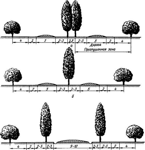 Расстояния между ярусами для среднерослых деревьев с широкой кроной 60-80 см, для сильнорослых с приподнятой кроной 80-100, а для слаборослых деревьев 40-60 см. Интервалы между одиночными ветвями верхних ярусов обычно сокращают на 15-20 см. Угол отхождения скелетных ветвей от проводника должен быть не менее 45˚. Крону начинают создавать на двухлетнем дереве, имеющем обычно 5-6 боковых разветвлений в виде годичных приростов на центральном проводнике. При закладке первого яруса ориентируются на нижний, хорошо развитый прирост. Его укорачивают до 50-60см, а затем выбирают два других прироста, правильно расположенных в пространстве, и укорачивают их на одном уровне с нижним. Если нижний прирост отходит под большим углом и отстает в рост от верхних, отходящих под меньшим углом, а выбора нет, то нижний приподнимают подвязкой к проводнику, а верхний наклоняют распаркой. Концы прироста должны быть на одном уровне к горизонтальной плоскости.
