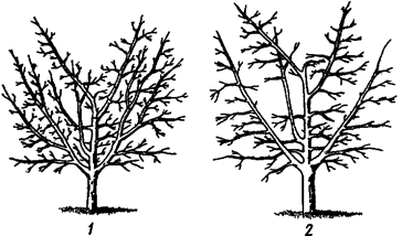 1 – с двумя порядками скелетных ветвей, 2 – с одним порядком