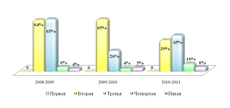 - отсутствие детей с первой группой здоровья и увеличение с третьей и четвертой;