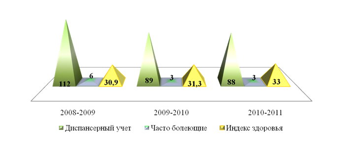 - в этом учебном году на 1,7 % повысился индекс здоровья воспитанников по сравнению с прошлым годом, что превышает предполагаемые результаты мониторинга программы развития ДОУ на 2%,и на 5,3% превышает показатель городской программы «Развитие образования города»;