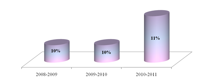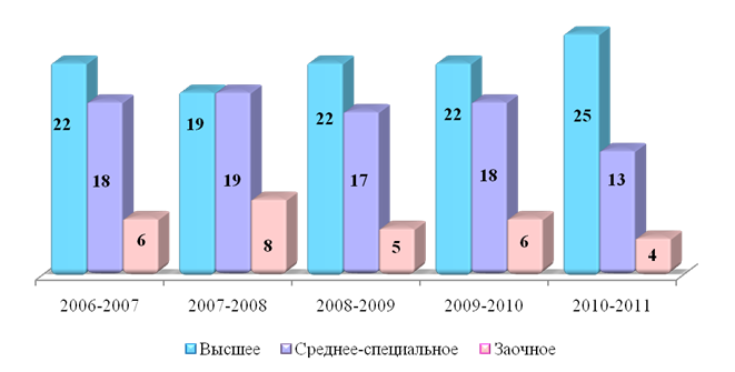 - показатель (22,2%) доли воспитанников охваченных дополнительными платными образовательными услугами в 2010-2011 учебном году повысился на 9,2%, в сравнении с прошлым годом, но еще ниже городского;