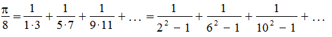 С весны 1673 г., в Париже, следуя советам Гюйгенса, Лейбниц с исключительной энергией берется за изучение математики. И в короткий период (весна 1673 - осень 1673) делает ряд открытий. Одно из знаменитых - носящий его имя бесконечный ряд, выражающий знаменитое число π: