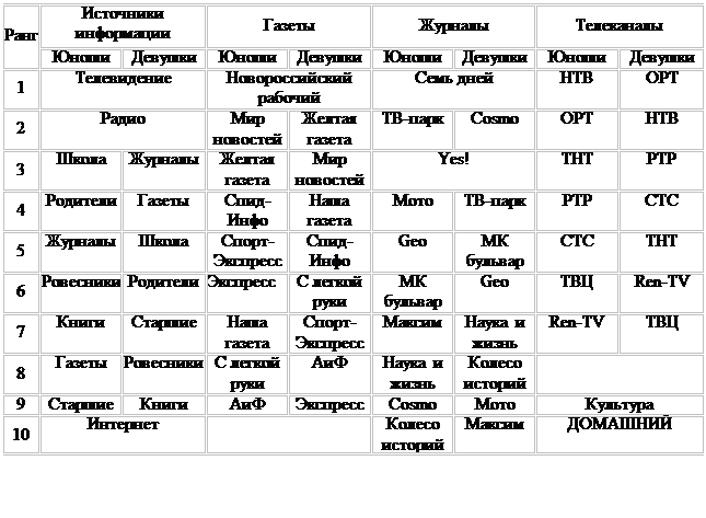 Следовательно, СМИ сегодня могут рассматриваться как один из факторов, способствующих социо-культурному развитию подростка, а также нравственному становлению личности. Именно поэтому нами была выбрана тема: «Средства массовой информации как фактор социально-культурного развития подростка ».