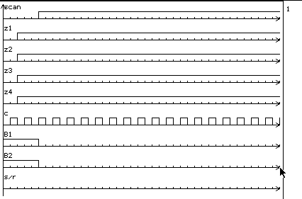 Неисправности B1º1, B2º1, B2º0, P31º1, P31º0, P11º0 проверить нельзя из-за выбранного режима работы. Таким образом, в качестве первоначального теста подадим следующую временную диаграмму: