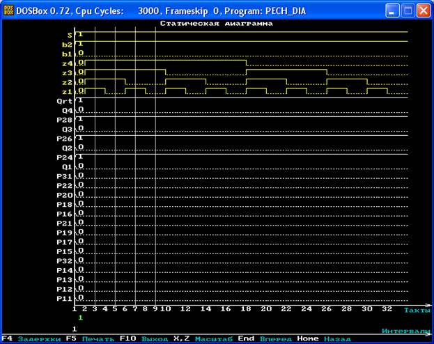 - B1=0, B2=1 – сброс (установка всех элементов памяти в «0»)