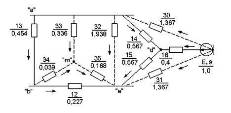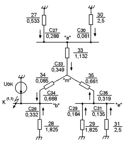 Коэффициенты токораспределения преобразованной и исходной схем замещения представлены на рис. 2.4 и рис.2.3.