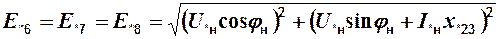 Рис.1.7. Остаточные линейные напряжения узлов, ЭДС источников и периодические слагающие тока ветвей в начальный момент времени к.з.
