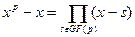 Доказательство: В поле Галуа (а также по малой теореме Ферма) . Значит s является корнем полинома , то есть (x-