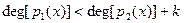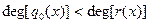Доказательство производится индукцией по степени делимого .Если или то положим и . В противном случае пусть , и образуем полином . При этом так как убрана старшая степень х. В случае или - всё доказано. В противном случае по индукции для некоторых и , таких что . Поэтому , что и доказывает существование полиномов и . Ясно, что и - полиномы в кольце К[x], при этом либо либо . Для доказательства единственности предположим наличие другой пары и , такой что , . Тогда и . A это может иметь место только в случае . Следовательно  и