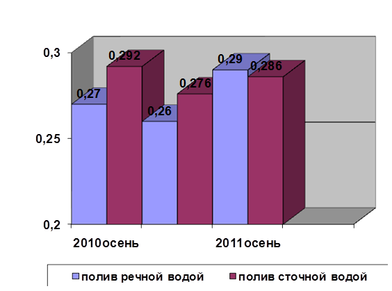 5.При поливе сточными водами несколько повышается плодородие почвы: гидролизуемый азот увеличивается на 7%, обменный калий на 11%. Отмечена тенденция почвы к осолонцеванию, что свидетельствует о необходимости предусмотрения мелиоративных мероприятий, направленных на предупреждение процесса засоления почвы.