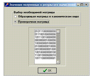 | 4.1. Составление порождающей матрицы и матрицы проверок