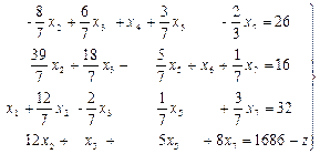 Получили задачу на условный экстремум. Для ее решения систему неравенств (3) при помощи дополнительных неотрицательных неизвестных х5