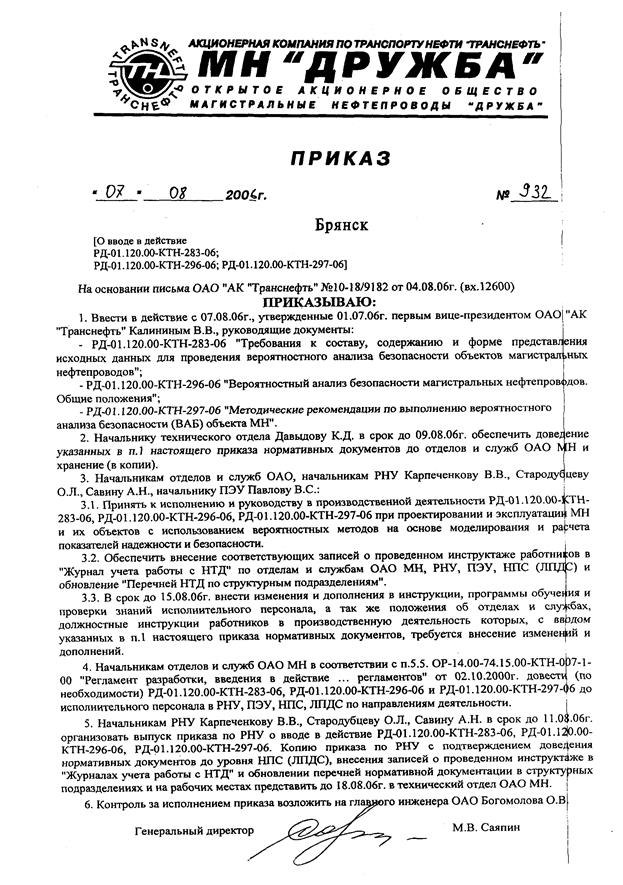 2 УТВЕРЖДЕН И ВВЕДЕН В ДЕЙСТВИЕ приказом ОАО «АК «Транснефть»