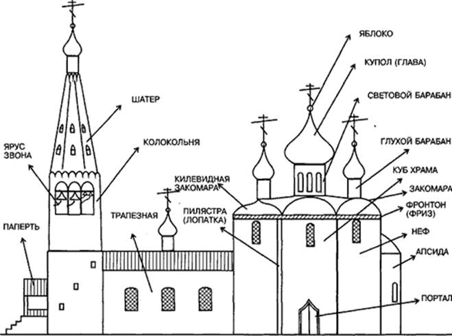 Схема внешнего устройства православного храма