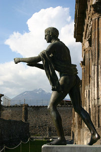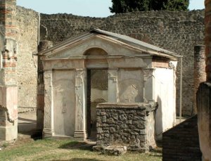 Вдоль берега и на склоне Везувия среди виноградников и садов белели виллы римских сенаторов и всадников. В глубине краснели крыши Помпеи, окруженные могучими защитными стенами с башнями. Дорога к одним из городских ворот проходила мимо гробниц помпейских богачей.