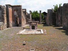 При доме были бассейн, баня, беседка с изящным портиком. Владелец дома имел два триклиния (осенний и зимний) - так назывались помещения, где стоял стол, окруженный с трех сторон ложами: у патрициев было принято возлежать во время еды.