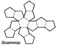 - Додекаэдр составлен из двенадцати равносторонних пятиугольников.