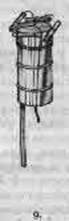 4) Вихревая ракета (черт. 9) состоит из крупной ракеты, сверху которой прикреплено несколько малых в горизонтальной плоскости. Сначала загорается крупная ракета; по достижении известной высоты загораются малые и дают красивый вихрь. Винтовая ракета подвязывается к хвосту не прямо, а наискось, тогда, при взлете, она опишет извилистый путь.