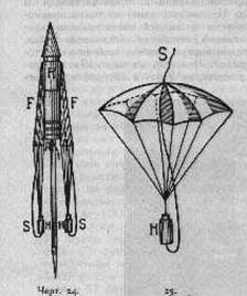 1) Сигнальные. Сигнальная или шлаговая ракета имеет следующее устройство (черт. 7): нижняя часть ее состоит из оболочки, с шейкой внизу, заполняемой порохом, причем от шейки s внутри заполнения оставляется пустое конусообразное пространство, которое способствует большой быстроте взрывания. Это пространство называется дулом и идет до сплошной части заряда, называемой глухим составом (z). Далее заряд закрывается шлаговой шайбой (х) с отверстием посредине.
