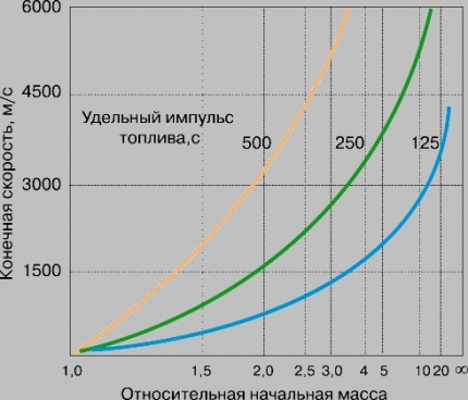 Из ракеты при помощи пружины можно было бы выбрасывать, например, песок — эффект движения был бы таким же. Однако гораздо выгоднее использовать сгорающее топливо, например порох, так как этот способ значительно эффективнее. Образующийся из пороха газ имеет большой удельный объем и, следовательно, большую скорость истечения (т. е. большую тягу) при малом расходе пороха. Кроме того, газ истекает самопроизвольно, а другие тела необходимо было бы выбрасывать при помощи какого-либо устройства, которое должно работать непрерывно..