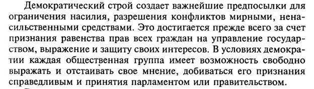 · Лексические особенности: термины (демократический строй, демократия, парламент, правительство, государство), абстрактная лексика (ограничение, признание), клише (за счет; в условиях);