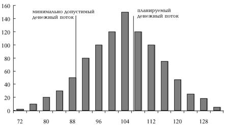 Установка лимитов риска позволяет лучше оценить косвенную и качественную политику управления риском. Диаграмма 3.5 демонстрирует распределение денежных потоков компании, выделяя запланированный уровень и минимально допустимый уровень, ниже которого, например, компания должна будет сократить дивиденд или отказаться от запланированных инвестиций, использующих внутренние фонды. Различие между запланированным денежным потоком компании и минимально допустимым денежным потоком определяет максимальный уровень CFAR, который могла бы принять фирма, хотя меньший лимит CFAR может быть желателен в случае, если компания хочет выполнить план с большей вероятностью.