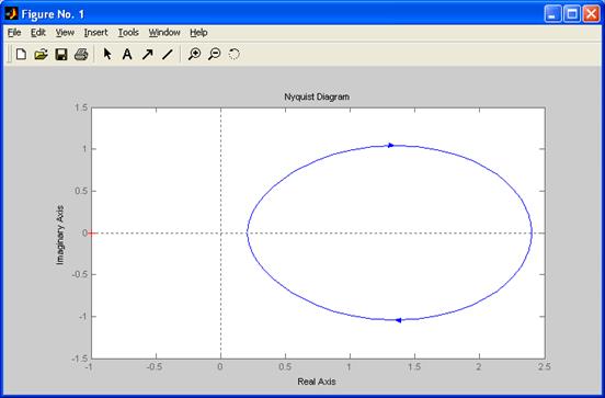 применена без указания параметров, то диаграмма строится автоматически для всего диапазона регулирования частоты ω Î (–¥; +¥) и полный годограф Найквиста симметричен относительно действительной оси.