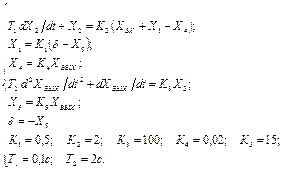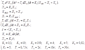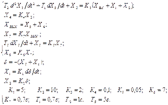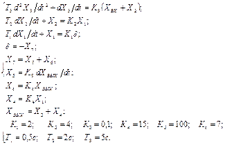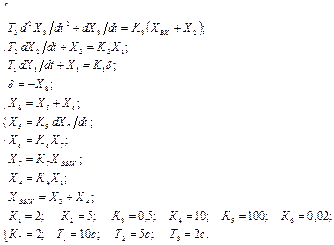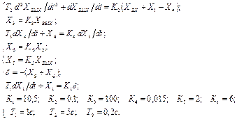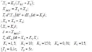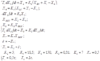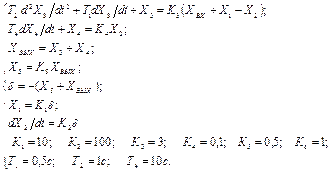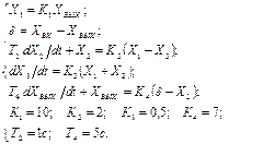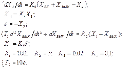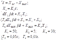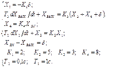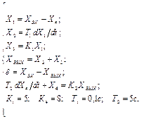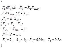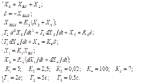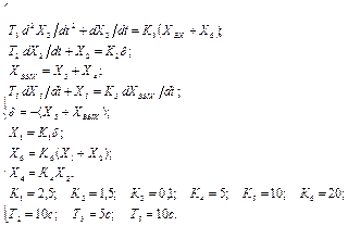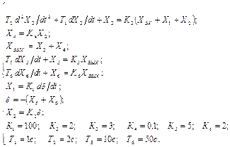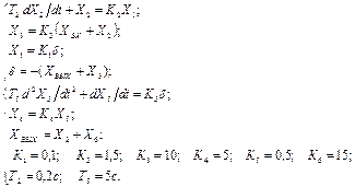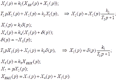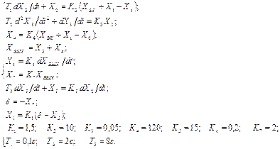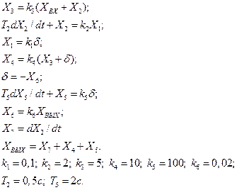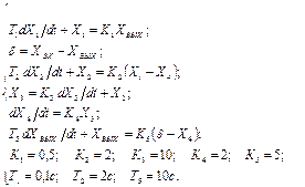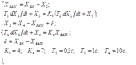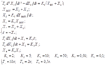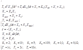 1. Составим структурную схему САУ. Перепишем в операторной форме исходную систему дифференциальных уравнений, приняв начальные условия нулевыми: