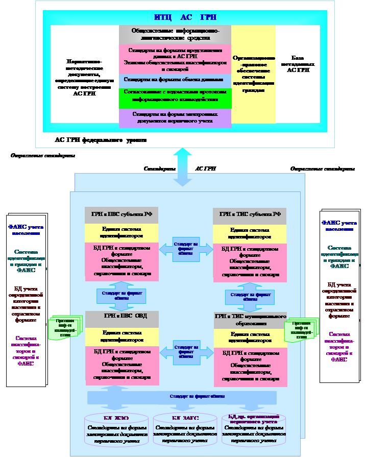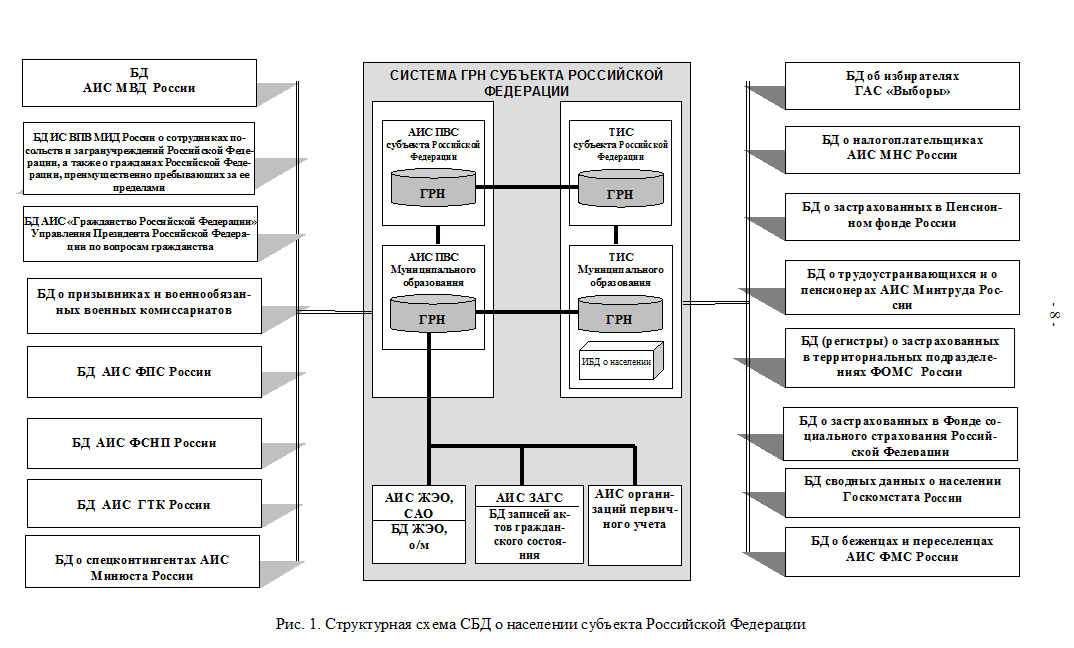 Государственный регистр населения должен включать именно такие регистрационные данные и строиться на основе существующей системы регистрации граждан по месту жительства и по месту пребывания в паспортно-визовой службе органов внутренних дел. Создание единых информационно-лингвистических средств (словарей, классификаторов, форматов представления основных регистрационных данных) АС ГРН и единой системы идентификации граждан позволит решить проблему информационной совместимости данных о личности, хранящихся в различных АИС учета населения, упростить процедуры информационного взаимодействия.