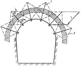 Установка дополнительных удлиненных анкеров, установка арок (при необходимости податливых), нарезка прорезей в набрызгбетоне
