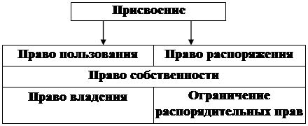 Понятие собственности, прежде всего, как экономической категории характеризует определенный перечень прав по отношению к отдельным элементам национального богатства. Другими словами, собственность – это отношение между человеком, группой или сообществом людей (субъектом), с одной стороны, и любой субстанцией материального мира (объектом), с другой стороны, заключающееся в постоянном или временном, частичном или полном отчуждении, отсоединении, присвоении объекта субъектом. Присвоение в своем историческом развитии проходит различные формы, приобретая наиболее развитую – форму собственности.
