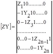 Уравнение всегда разрешимо: Можно избежать трудностей вычисления обратной матрицы [ZY], если воспользоваться некоторыми свойствами трехдагональных матриц, к которым относится матрица параметров [ZY]