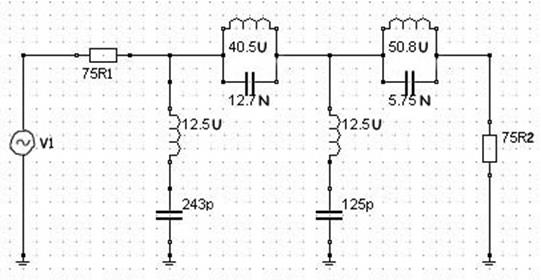 В результате проведенного анализа можно сделать вывод что в пределах разброса параметров индуктивностей и емкостей ± 0.5 % схема сохраняет необходимые избирательные свойства. При изменении параметров меняются только максимальные значения затухания без сдвига их по частоте.