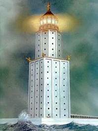 Чтобы корабли могли благополучно миновать рифы на пути в александрийскую бухту, в III веке до н.э. был построен маяк. Ночью коряблям помогало отражение языков пламени, а днем - столб дыма. Это был первый в мире маяк, и простоял он 1500 лет. Маяк был построен на маленьком острове Фарос в Средиземном море, около берегов Александрии. Этот оживленный порт основал Александр Великий во время посещения Египта. Сооружение назвали по имени острова. На его строительство ушло 20 лет. Маяк был завершен около 280 г. до н.э., во времена правления Птолемея II, царя Египта.