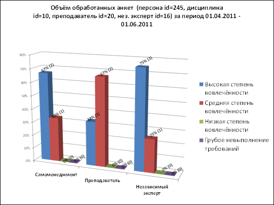 Результаты обработки анкет представлены педагогическому коллективам и администрации школ №1201 и №751 для учета в практической работе. Примеры результатов обработки представлены ниже: