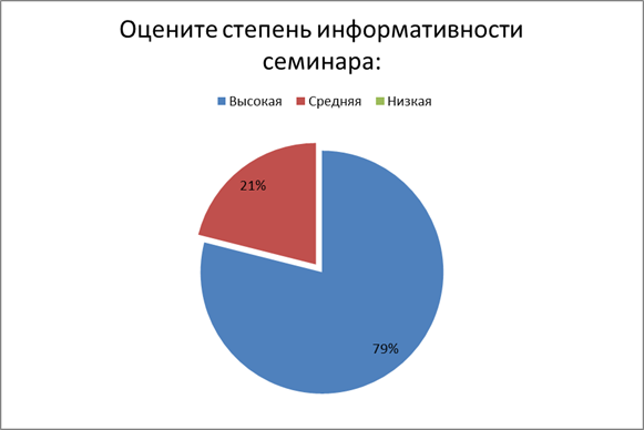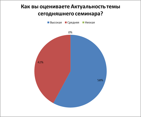 По итогам семинара было проведено анкетирование присутствовавших на нем участников на предмет актуальности и информативности, были получены следующие ответы: