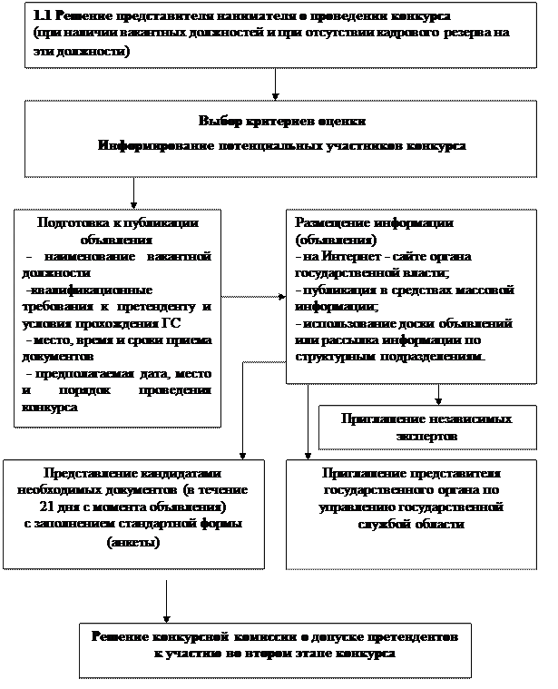 Нормативно - правовая база, регламентирующая поступление на государственную службу и ее прохождение - прежде всего Федеральный закон «О государственной гражданской службе Российской Федерации», предусматривает преимущественное поступление на государственную службу на конкурсной основе. Чтобы на основе конкурса действительно подбирались наиболее квалифицированные кадры и конкурс не сводился к формальной процедуре, нужна эффективная технология его проведения.