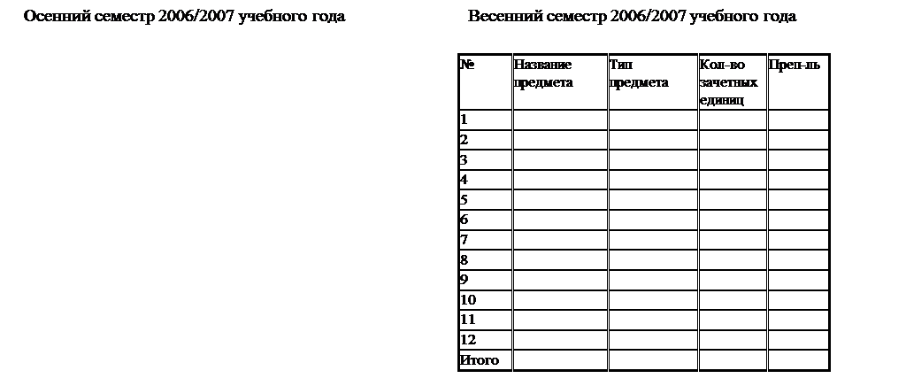 Индивидуальный учебный план по специальности ______________ студента ______________________ курса ________________________