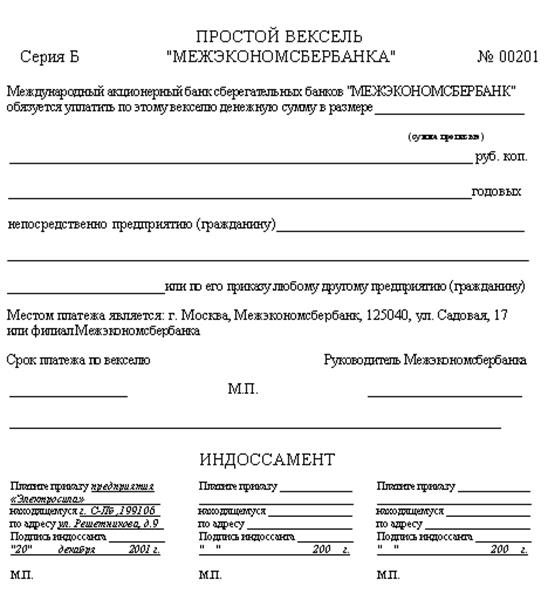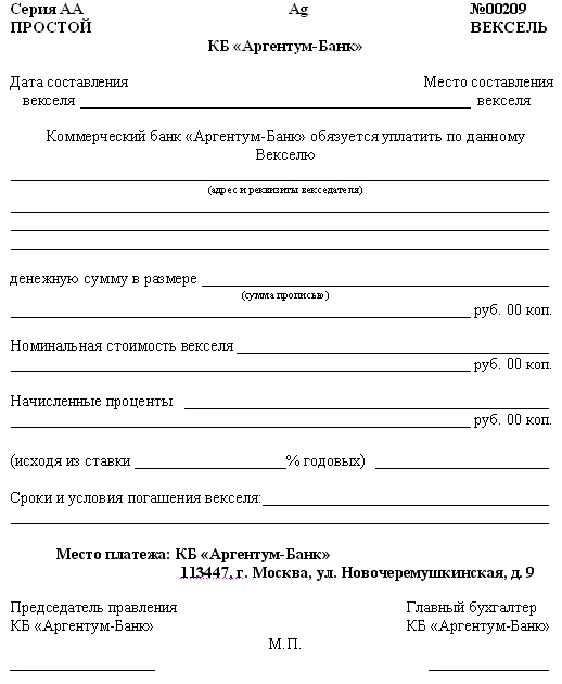 3 Заполнить форму простого векселя КБ "Аргентум-Банк"