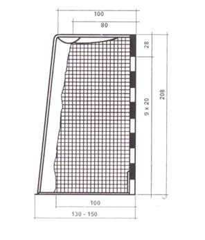 Внутренне размеры ворот: ширина 3м и высота 2м (Диаграмма 2а и 2б). Ворота должны быть жестко закреплены в песке, но крепления ни в коей мере не должны представлять опасность для игроков.