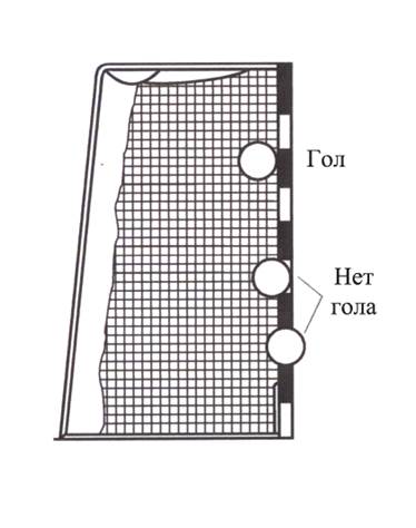 Ворота должны иметь сетку, которая крепится таким образом, чтобы мяч, брошенный в ворота, обычно оставался в воротах.