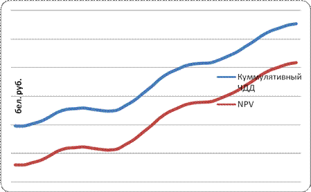 Чистый дисконтированный доход на последний период расчёта проекта (на 36-й месяц) составит NPV=109 230 254,5 бел.руб.; индекс прибыльности - PI=2,6; дисконтированный срок окупаемости проекта - DPP=18 месяцев.