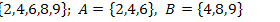 Пусть А = , В = . Найти А В, А В, А\В, В\А, А В.