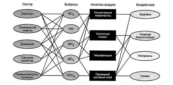 Из рисунка видно, что загрязнение окружающей природной среды влечет за собой ряд взаимосвязанных негативных последствий – загрязнение атмосферы, разрушение озонового слоя, загрязнение водоемов, сокращение биоразнообразия, снижение биопродуктивности почв, увеличение заболеваемости населения, и т. д. Наиболее интенсивными и опасными источниками воздействия на природу являются промышленные объекты. Их влияние имеет комплексный характер.