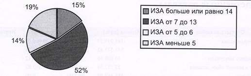 Рис. 2. Распределение городов России по уровням загрязнения (%).